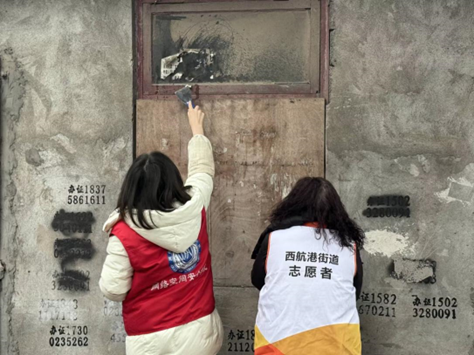 公司青志协负责人与近都社区工作人员联系并安排好对应工作,由部员领队和志愿者们走进近都社区。先与社区负责人做好交接工作并签到确认实到人数,之后拿好工具进入社区进行小广告清理工作。在此期间,志愿者们和社区负责人们愉快交谈,彼此配合,对居民住房墙面上的小广告进行了铲除,为居民提供一个更为干净整洁的居住环境。工作完成后,志愿者们同社区工作人员合影留恋。