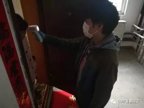 除了坚守卡口,王海屹同学还经常参与入户测体温的工作,帮助社区工作者详细记录小区居民的身体健康状况。